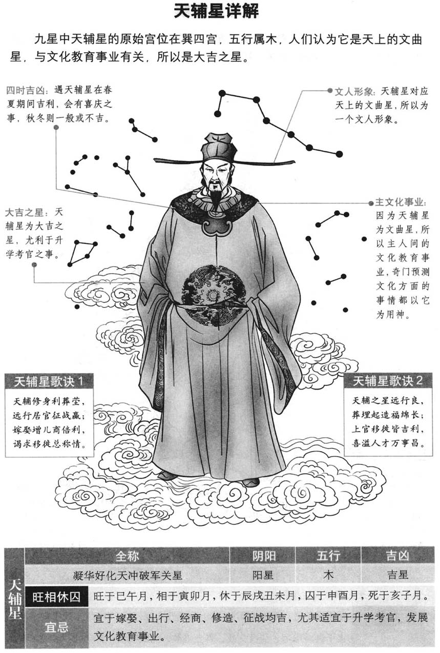 • 古人认为天辅星是大吉之星,多代表吉祥、顺利的意象,与文化教育、和谐发展等积极的事物相关.
