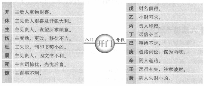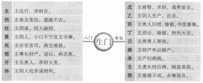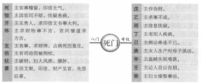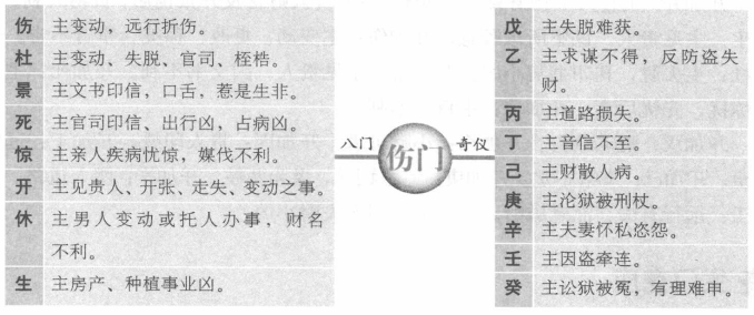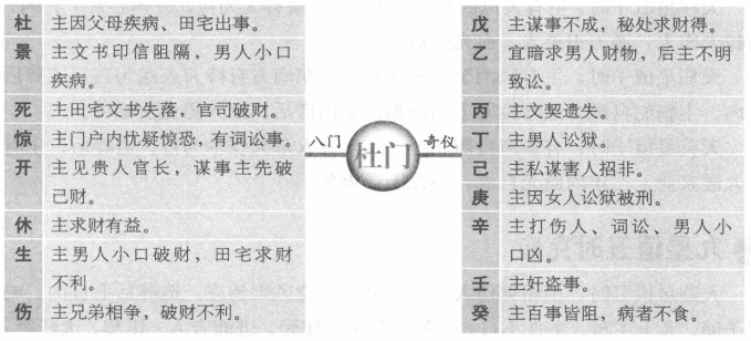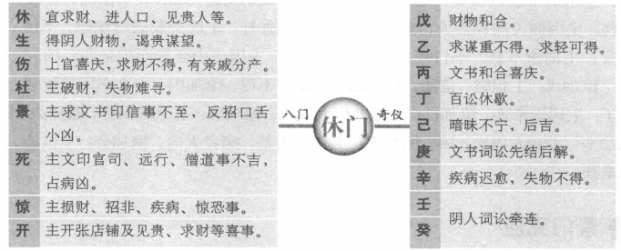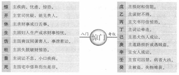 八门克应总述 所谓八门克应,有八门静应和八门动应之分,八门静应是指门加门、门加三奇六仪所形成的格局及其吉凶,主要用于占事。八门动应主要是门与门相对时,在出门等路上所遇到的兆应,主要用于择吉。关于八门克应还有多种说法,有的认为八门克应包括八门主应、八门静应和八门动应,所谓八门主应就是指八门自身所包含的信息。另外,有的八门静应还包括八门与八卦相对时所形成的格局和吉凶。以下所讲的内容,主要讲的是八卦静应,也就是门与门和门与三奇六仪所形成的格局和吉凶。 休门克应 休加休:求财、进人口、见贵人吉利,上任、修造亦大利。休加生:主得阴人财物,谒贵谋望,虽迟也吉。休加伤:上官喜庆,求财不得,有亲戚分产。变动事不吉。休加杜:主破财,失物难寻。休加景:主求文书印信事不至,反招口舌小凶。休加死:主文印官司事不吉,远行、僧道事不吉,占病凶。休加惊:主损财、招非、疾病、惊恐事。休加开:主开张店铺及见贵、求财等喜事,大吉。休加戊:财物和合。休加乙:求谋重不得,求轻可得。休加丙:文书和合喜庆。休加丁:百讼休歇。休加已:暗昧不宁,后吉。休加:文书词讼先结后解。休加辛:疾病迟愈,失物不得。休加壬、癸:阴人词讼牵连。 死门克应 死加死:主官事稽留,印信无气,凶。死加惊:主因官司不结,疑患病,凶。死加开:主见贵人,求印信文书事大利。死加休:主求财物事不吉,若问僧道求方吉。死加生:主丧事,求财得,占病死而复生。死加伤:主官司动而被刑杖,凶。死加杜:主破财,妇人风疾,腹肿。死加景:主因文契印信财产事见官,先怒后喜,不凶。 死加戊:主作伪财。死加乙:主求事不成。死加丙:主信息忧疑。死加丁:主老阳人疾病。死加已:主病讼牵连不已,凶,死加庚:主女人生产,母子俱凶。死加辛:主盗贼失脱难获。死加壬:主讼人自讼自招。死加癸:主妇女娶事凶。 伤门克应 伤加伤:主变动,远行折伤,凶。伤加杜:主变动、失脱、官司、梏,百事凶。伤加景:主文书印信,口舌,惹是生非。伤加死:主官司印信凶,出行大忌,占病凶。伤加惊:主亲人疾病忧惊,媒伐不利,凶。伤加开:主见贵人、开张、走失、变动之事,不利。伤加休:主男人变动或托人办事,财名不利。伤加生:主房产、种植事业,凶。 伤加戊:主失脱难获。伤加乙:主求谋不得,反防盗失财。伤加丙:主道路损失。伤加丁:主音信不至。伤加已:主财散人病。伤加庚:主沦狱被刑杖,凶。伤加辛:主夫妻怀私恣怨。伤加壬:主因盗牵连。伤加:主讼狱被冤,有理难申。 惊门克应 惊加惊:主疾病,忧虑,惊恐。惊加开:主官司忧疑,能见贵人不凶。惊加休:主求财事或口舌事,迟吉。惊加生:主因妇人生产或求财事惊忧,皆吉。惊加伤:主因商议同谋害人,事泄惹讼,凶。惊加杜:主因失脱破财惊恐,不凶。惊加景:主词讼不息,小口疾病,凶。惊加死:主因宅中怪异而生是非,凶。惊加戊:主损财,信阻。惊加乙:主谋财不得。惊加丙:主文书印信惊恐。惊加丁:主词讼牵连。惊加已:主恶犬伤人成讼。惊加庚:主道路损折,遇贼盗,凶。惊加辛:主女人成讼,凶。惊加壬:主官司囚禁,病者大凶。惊加:主被盗,失物难获。 景门克应 景加景:主文状未动有预先见之意,内有男人小口忧患。景加死:主官讼,因田宅事相争,惹麻烦。景加惊:主官讼,女人小口疾病,凶。景加开:主官人升迁,吉;求文印更吉。景加休:主文书遗失,争讼不休。景加生:主阴人生产大喜,更主求财旺利,行人皆吉。景加伤:主姻亲小口口舌。景加杜:主失脱文书败财后平。 景加戊:因财产词讼,远行吉。景加乙:主讼事不成。景加丙:主文书急迫火速不利。景加丁:主因文书印状招非。景加已:主官司牵连。景加庚:主讼人自讼。景加辛:主阴人词讼。景加壬:主因贼牵连。景加癸:主因奴受刑。 开门克应 开加开:主贵人宝物财喜。开加休:主见贵人财喜及开张铺店,贸易大利。开加生:主见贵人,谋望所求顺意。开加伤:主变动、更改、移徙,事皆不吉。开加杜:主失脱,刊印书契小凶。开加景:主见贵人,因文书不利。开加死:主官司惊扰,先忧后喜。开加惊:主百事不利。 开加戊:财名俱得。开加乙:小财可求。开加丙:贵人印绶。开加丁:远信必至。开加己:事绪不定。开加庚:道路词讼,谋为两。开加辛:阴人道路。开加壬:远行有失,注意破财。开加癸:阴人失财小凶。 生门克应 生加生:主远行、求财吉。生加伤:主亲友变动,道路不吉。生加杜:主阴谋,阴人破财,不利。生加景:主阴人、小口不宁及文书事,后吉。生加死:主田宅官司,病主难救。生加惊:主尊长财产、词讼,病迟愈,吉。生加开:主见贵人,求财大发。生加休:主阴人处求谋财利,吉。 生加戊:嫁娶、求财、谒贵皆吉。生加乙:主阴人生产,迟吉。生加丙:主贵人印绶、婚姻、书信喜事。生加丁:主词讼、婚姻、财利大吉。生加已:主得贵人维持,吉。生加庚:主财产争讼破产,不利。生加辛:主产妇疾病,后吉。生加壬:主遗失财后得,贼盗易获。生加癸:主婚姻不成,余事皆吉。 杜门克应 杜加杜:主因父母疾病、田宅出脱事,凶。杜加景:主文书印信阻隔,男人小口疾病,迟疑不利。杜加死:主田宅文书失落,官司破财,小凶。杜加惊:主门户内忧疑惊恐,并有词讼事。杜加开:主见贵人官长,谋事主先破已财,后吉。杜加休:主求财有益。杜加生:主男人小口破财,田宅求财不利。杜加伤:主兄弟相争,破财不利。 杜加戊:主谋事不成,秘