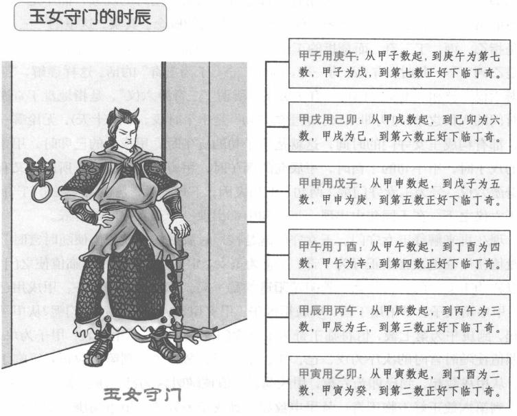 【原文】 又有三奇游六仪,号为玉女守门扉。 【原注】 三奇游六仪者,乃天上三奇乙丙丁,地下三奇甲戊庚,游于甲子戊,甲戌己,甲申庚,甲午辛,甲辰壬,甲寅癸,此六仪也。《三元经》曰:“三奇游六仪,利以宫建宴会喜乐之事。” 玉女守门者,谓丁为玉女,而会天乙值使之门也。如阳遁一局,顺仪逆奇,地盘丁在兑,而以天乙值使休门,加之甲子时休门起坎,乙丑时休门到坤,丙寅时休门到震,丁卯时休门到巽,戊辰时休门到申,已巳时休门到乾,庚午时休门到兑,地盘丁奇兑上。故甲子旬庚午时,为玉女守门也。 又接前数,辛未时休门到艮,壬申休门到离,癸酉休门到坎,值使十时一易。甲戌时以死门到坤,为值使,乙亥时死门在震,丙子时死门在巽,丁丑时死门在中宫,戊寅时死门在乾,已卯时死门到兑,地盘丁奇兑上。故甲戌旬己卯时,为玉女守门也。 甲申时以伤门值使震宫,乙酉时伤门到巽,丙戌时伤门到申,丁亥时伤门到乾,戊子时伤门值使到兑,地盘丁奇兑上。故甲申旬戊子时,为玉女守门也。又累累数至甲午时,以杜门值使在巽,乙未时杜门到五,丙申时杜门到乾,丁酉时杜门值使到兑,地盘丁奇兑上。故甲午旬以丁酉时,为玉女守门时也。又累累数去,到甲辰时,以死门值使到中宫,乙巳时死门到乾,丙午时死门值使到兑,地盘丁奇兑上。故甲辰旬丙午时,为玉女守门时也。 又累累数去到甲寅时,开门值使到乾,乙卯时开门值使到兑宫,地盘丁奇兑上。故甲寅旬乙卯时,为玉女守门时也。 甲子用庚午者,甲子同六戊,用五子元遁,戊癸逢壬子,起壬子七数而见戊字。故甲子用七数庚午也。 甲戌用已卯者,甲戌同六已,用五子元遁,甲已还加甲,起甲子六数而见已字,故甲戌用六数已卯也。 甲申用戊子者,甲申同六庚,用五子元遁,乙庚丙作初,起丙子五数而见庚字,故甲申用五数戊子也。 甲年用丁酉者,甲午同六辛,用五子元遁,丙辛生戊子,起戊子四数而见辛字,故甲午用四数丁酉也。 甲辰用丙午者,甲辰同六壬,用五子元遁,丁壬庚子居,起庚子三数而见壬字,故甲辰用三数丙午也。 甲寅用乙卯者,甲寅同六癸,用五子元遁,戊癸逢壬子,起壬子二数而见癸字,故甲寅用二数乙卯也。 【白话提要】 古书中对“三奇游六仪”的解读有多种,明代池本理认为,三奇游六仪是指天上三奇乙丙丁和地下三奇甲戊庚,游于甲子戊、甲戌己、甲申庚、甲午辛、甲辰壬、甲寅癸六仪。《景佑遁甲符应经纂·释三奇游六仪即玉女守门时》中认为,三奇游六仪就是天盘乙丙丁三奇游于六仪之上,但三奇游六仪为什么就是玉女守门,仍然没有解释明白。《遁甲演义》则认为,三奇游六仪和玉女守门根本就没有什么关系。各书对三奇游六仪的解释,都是说了活盘转动时的现象,而不是一种静态的格局,这样看来,三奇游六仪便是一个无谓的概念。其实,这里的“三奇”不是指乙、丙、丁三奇,而是指的丁奇,丁奇也可称做“三奇”。池本理注“三奇即是乙丙丁”一句时,有“乙为一奇,丙为二奇,丁为三奇”的话。这样理解,“三奇游六仪”就和“玉女守门扉”有了关系。所谓“三奇游六仪”,是指地盘丁奇游于时间的六仪之下(旬头即六仪。这里的“旬”是十个时辰,不是十天),无论哪一句,都有构成玉女守门的时间,这就是甲子旬的庚午时,甲戌旬的己卯时,甲申旬的戊子时,甲午旬的丁酉时,甲辰旬的丙午时,甲寅旬的乙卯时。所以“又有三奇游六仪,号为玉女守门扉”两句,上句表因,下句表果,是说由于三奇(丁奇)游于六仪之下,在不同旬中出现,每一句中都出现一个玉女守门的时辰。 现在再来解释玉女守门。玉女守门就是按照时辰拨转门盘“值使随时宫时”,门盘值使所临地盘宫中正好为丁奇。丁奇为玉女,定局后,它正好下临值使之门,所以称为玉女守门。为什么不管阴遁阳遁的哪一局,都是甲子用庚午、甲戌用己卯、甲申用戊子、甲午用丁酉、甲辰用丙午、甲寅用乙卯而为玉女守门呢?从甲子数起,到庚午为第七数,值符临丁奇为玉女守门。再请看六十甲子表:甲子为戊,按照值使随时宫时的次序为戊、己、庚、辛、壬、癸、丁,到第七数正好下临丁奇。从甲戌数起,到己卯为六数,甲戌为己,值使随时宫为己、庚、辛、壬、癸、丁,到第六数正好下临丁奇。从甲申数起,到戊子为五数,甲申为庚,从庚到丁也为五数,值使这时加临于丁。甲午到丁酉为四数,甲午为辛,值使随时宫为辛、壬、癸、丁,四数下临丁奇。甲辰到丙午为三数,甲辰为壬,值使随时宫为壬、癸、丁,三数下临丁奇。甲寅到乙卯为二数,甲寅为癸,值符随时宫飞一位为二数即下临丁奇,所以己卯时为玉女守门。 玉女守门格局 在奇门遁甲中的玉女守门格,是按照时辰拨转门盘“值使随时宫时”,门盘值使所临地盘宫中正好为丁奇。 |
