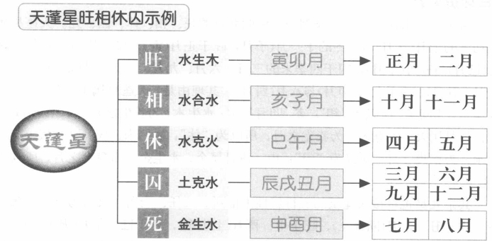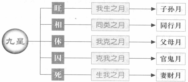 九星旺相休囚死的确定 九星的吉凶与旺相休囚死有很大的关系,它的旺相休囚死于五行生克相联系,下面就具体说明九星的旺相休囚死如何确定。 【原文】 与我同行即为相,我生之月诚为旺。 废于父母休于财,囚干鬼兮真不妄。 【原注】 《三元经》曰:九星休旺者,谓九星各旺于我生之月,相为同类之月,死于生我之月,囚于官鬼之月,休于妻才之月。 九星所属:天蓬水宿,天芮土宿,天冲木宿,天辅木宿,天禽土宿,天心金宿,天柱金宿,天任土宿,天英火宿。 【白话提要】 这里再具体谈及九星各自的五行处于旺、相、休、囚、死的月份。每年阴历十二个月是用固定的地支来表示的,而这些地支的五行属性是:亥月(十月)、子月(十一月)属水;寅月(正月)、卯月(二月)属木;巳月(四月)、午月(五月)属火;申月(七月)、酉月(八月)属金;辰月(三月)、未月(六月)、戌月(九月)、丑月(十二月)属土。 按照五行的相生相克来议论,古代又有不少的专用术语:生我的为“父母”我生的为“子孙”,克我的为“官鬼”;我克的为“妻财”;同类的为“兄弟”。比如,“木”的父母是水(水生木),子孙是火(木生火),官鬼是金(金克木),妻财是土(木克土),兄弟是同类的木(又称“比肩”)。 这里的歌诀意思是说,天盘上的九星各自旺于我生之月(子孙月),相于同类之月(同行月),死于生我之月(父母月),囚于克我之月(官鬼月),休于我克之月(妻财月)。这里与一般性的推理有所不同。一般来说,应旺于生我之月,相于同类之月休于我生之月,囚于我克之月,死于克我之月。但这里论的是九星出没与月份的关系,或许是从天星对人间事物的阴庇出发来作理性推演的。 此信息最后更新时间为:2015-11-4 00:00