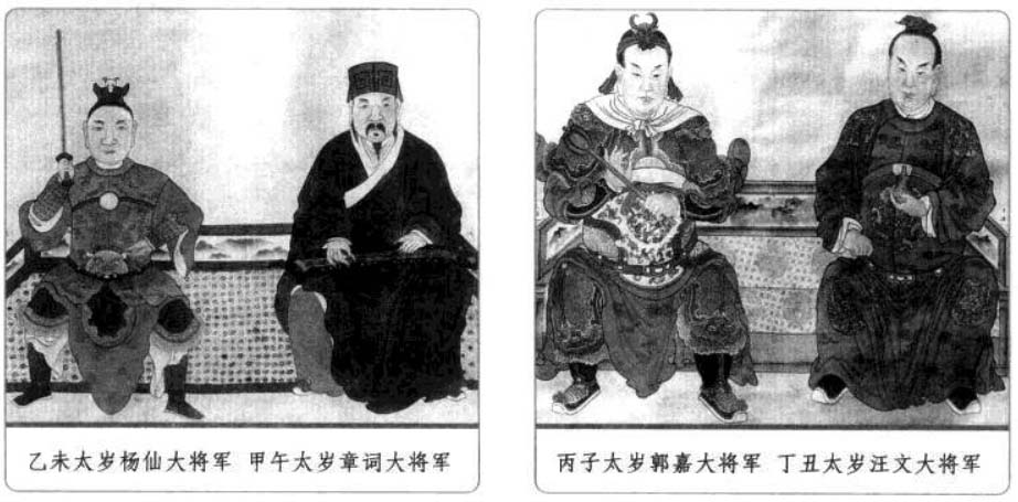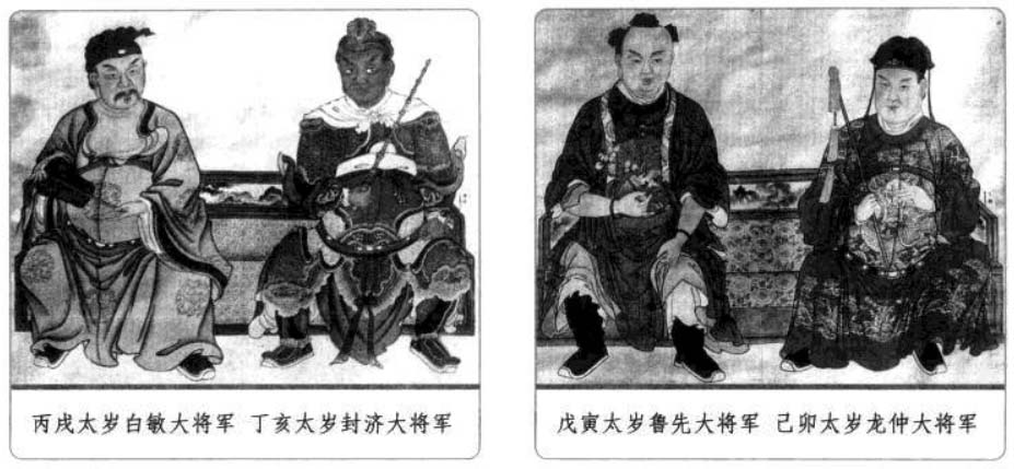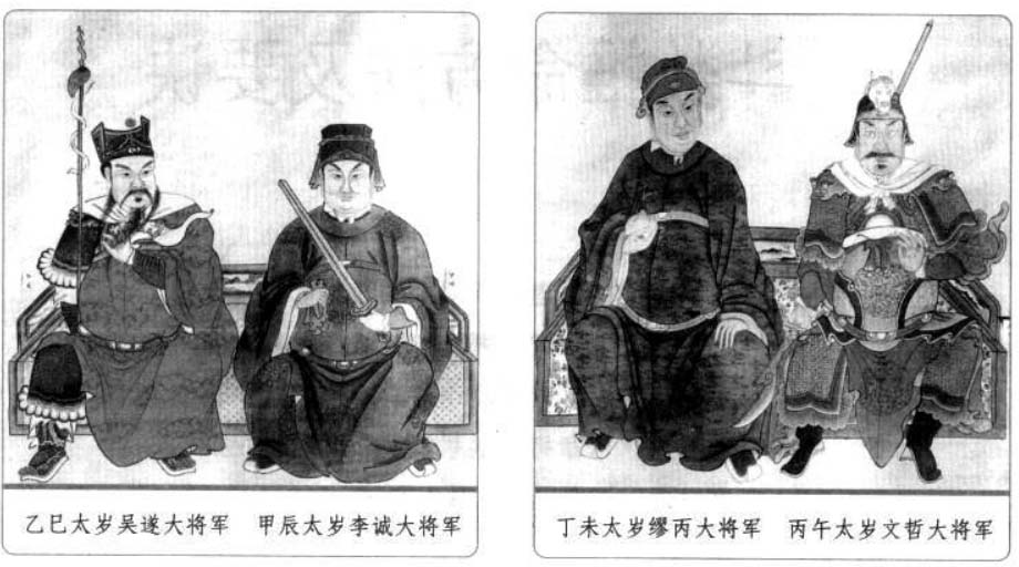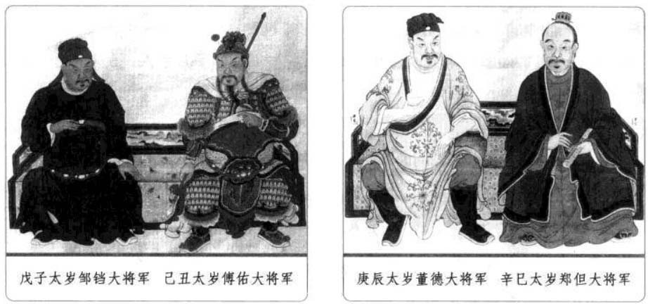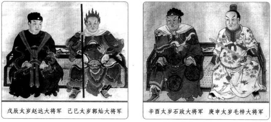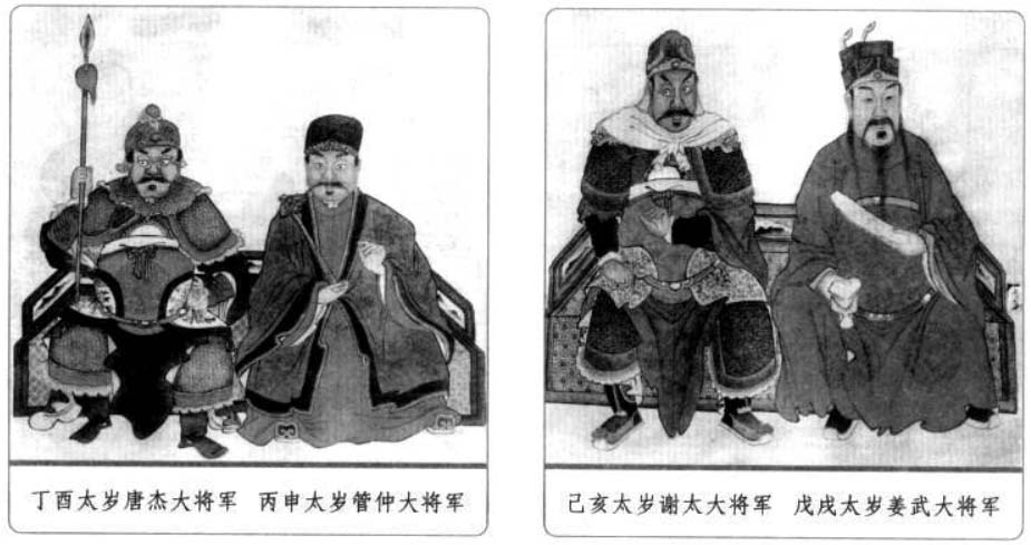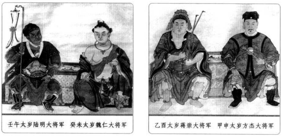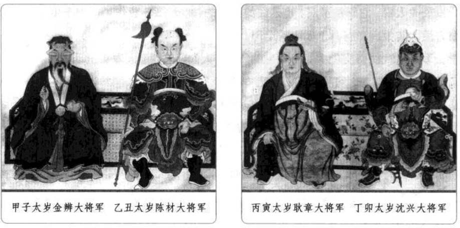 六、太岁星君 太岁星君又称太岁,是天上的木星,因为木星每十二个月运行一次,所以古人称木星为岁星或太岁,它既是星辰,也是民间奉祀的神。紫微斗数作为中国土生土长的命理推演方法,其中同样有对于太岁的运用。 太岁是古代民俗文化中一个常见的概念,人们经常说“太岁头上动土”,“太岁当头坐,无喜必有祸”等,可见人们对于太岁的禁忌与畏惧。而人们常说的“犯太岁”其实就是指一个人的生肖与该年的生肖相冲,即生年地支与流年地支重叠相同,本命年为人生之“坎”也就是本命年“犯太岁”。在紫微斗数中,太岁作为星曜有如下特性: 1.太岁为当年“岁之君”,主一年的吉凶,为水之精。太岁与众星不睦,运限逢之,若遇紫微、天府、左辅、右弼、文昌、文曲、天魁、天钺星扶持,灾少,宜防有六畜之失。若与擎羊、陀罗、火星、铃星、地空、地劫、破军、天使星相冲身命,则易财散人亡,女人宜防产厄。 2.太岁喜守迁移、官禄、财帛宫三方,又喜遇紫、府、左、右、机、梁、日、月诸星,诸星入庙则吉,陷地加煞则凶。 3.年犯岁君,如子年生人,太岁在子;月犯岁君,如子月生人,太岁在子,日、时亦然。 歌曰: 太岁当头坐,诸神不敌当, 任是铁罗汉,也吃皱眉汤, 逢凶偏作恶,年辰遇必殃, 若遇科权禄,横发不寻常, 忌宿临其内,夹限必身亡, 更有流年论,重逢限不宜, 若还临命限,灾疾有刑伤, 更值官符宿,未免犯官防, 若遇吉星凑,方可免灾殃。 太岁头上动土的由来与值年太岁 古代天文学中把木星称为“太岁”(或岁星),并划分周天为十二份,太岁每年行经一次,都有特定的名称。太岁某一年在某一方,这一方就不能动土搞建筑,否则触犯了太岁,就会招来灾祸。这一说法早在宋朝就有。元末明初施耐庵《水浒传》第二回也曾提到过:陈达准备从史进所住的史家村借条路去打华阴县。路经史家村时,史进召集众庄客截住道路,对陈达喝道:“你也须有耳朵,好大胆,直来太岁头上动土。”敢这样说的当然就是有来头的人。 在道教中,太岁则为道教神明的尊称,又称太岁星君,或者岁君。一甲子60年中,每一年天上都会派一位神仙出来值年,他负责掌管这一年人间的福与祸,也掌管这一年出生的人一生的祸福,老百姓尊称这些神仙为值年太岁,60年就有60位太岁,所以统称为60甲子神。本书此后4页中所列出的就是值年太岁的部分。