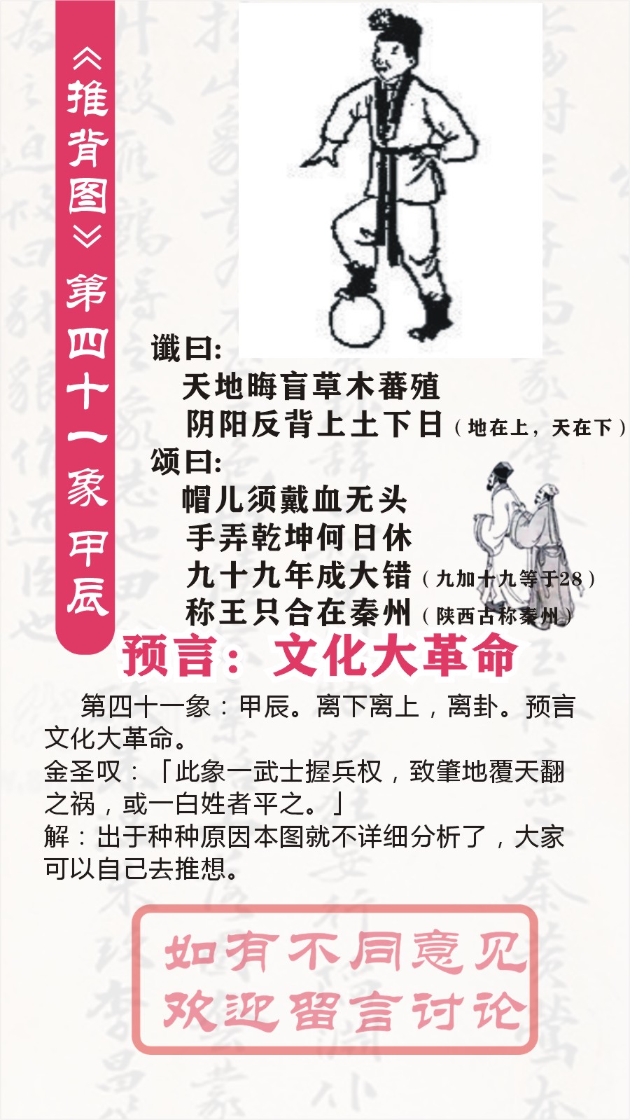 ![]() 〓〓〓《推背图》(图文全解)〓〓〓 第四十一象甲辰(文革的预言)
